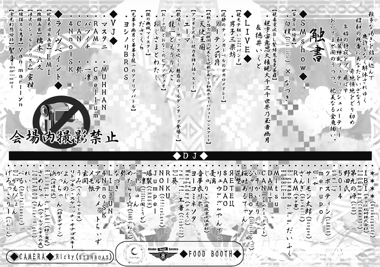 ドレスコードでの入場制限は御座いませんが当イベントイメージにあった衣装で御来場頂けると大変嬉しいです。